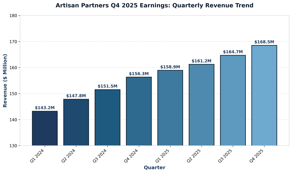Artisan Partners Asset Management Inc. (NYSE: APAM) reported strong performance in 2025. Assets under management grew nearly 12% during the year. Artisan Q4 2025 earnings exceeded expectations as the asset management firm reported record assets under management. The Milwaukee-based company demonstrated momentum across all key metrics. For the official Artisan Q4 2025 earnings announcement, visit the investor relations page.