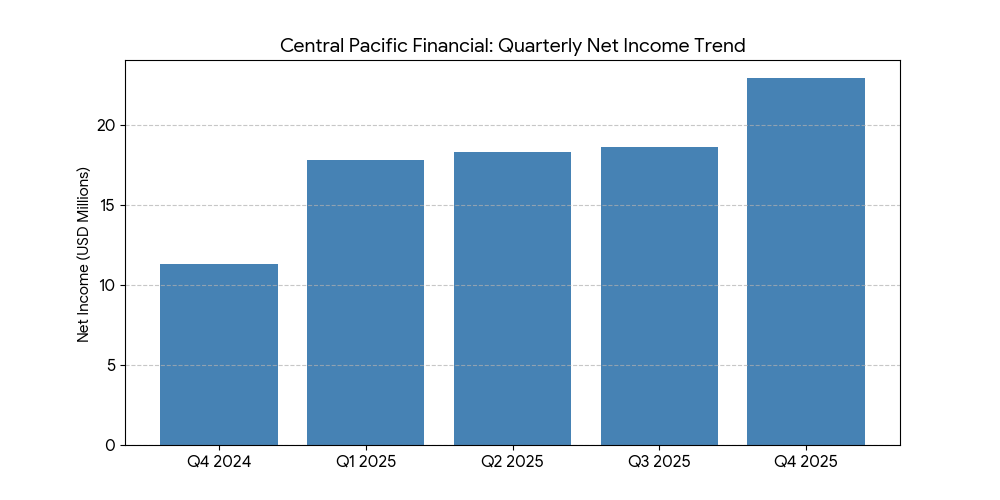 For the full year 2025, Central Pacific Financial reported a net profit of $77.5 million, up from $53.4 million in 2024. Annual revenue reached $292.7 million, compared to $250.5 million in the prior year. The company maintained a directional trend of growth in both interest and non-interest income streams throughout the fiscal year.