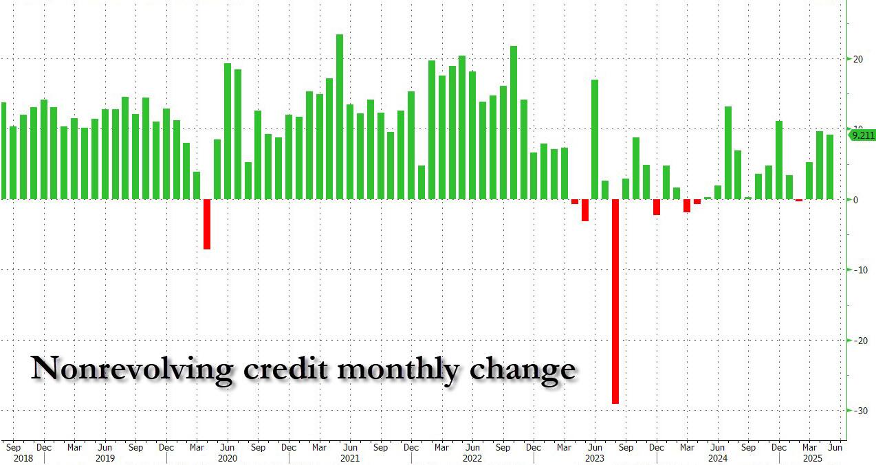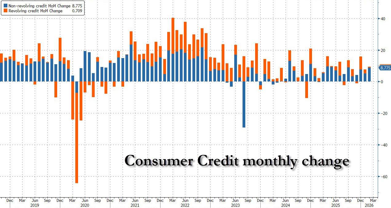 Revolving credit rose a modest $709 million – the weakest monthly increase since November – to $1.328 trillion, the highest since November 2024.