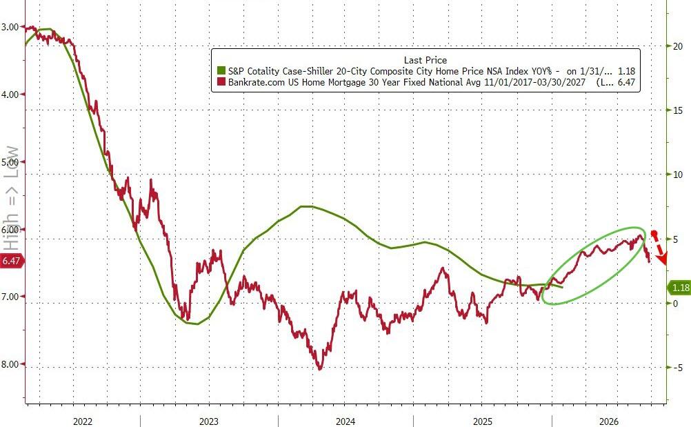 However, declining mortgage rates since suggest a rebound in aggregate prices could be about to explode…