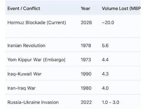 The current Hormuz blockade is running at roughly 20 million barrels per day.