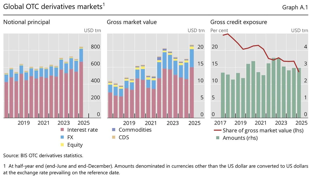 What exists instead is $846 trillion in notional OTC derivatives. Up from $108 trillion in 2000. An eightfold expansion in 25 years, and mid ‘24 → ’25 was the largest growth rate at 16% since 2008.