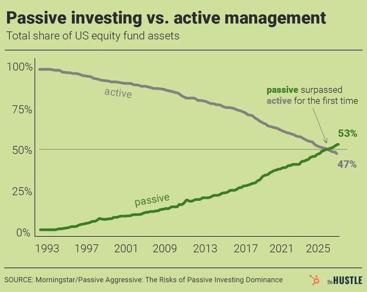 When people need cash fast, they sell what’s liquid. ETFs are the most liquid thing in the world. They sell indiscriminately – tech, gold miners, silver, and just about anything else. You don’t sell what you want to sell. You sell what has a bid. And passive investment? Volume wise, ETFs are like 60% of US equity markets (2024). In 1996 that was only 6%. Which means that when selling starts it’s mechanical. No analysis. No discrimination. Every ETF holder hitting the same exit through the same small door at the same time.