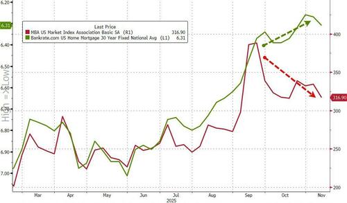 With mortgage rates tumbling, housing market participants have been disappointed by the lack of enthusiasm by homebuyers to apply for mortgages (though there was a decent bounce in refi activity)…