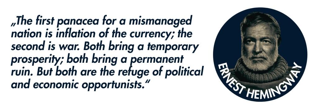 This has always meant “temporary prosperity followed by permanent ruin” created by a handful of “political and economic opportunists,” who, as Hemingway warned, take their nations toward currency destruction and war – the very scenario in which we now openly find ourselves.