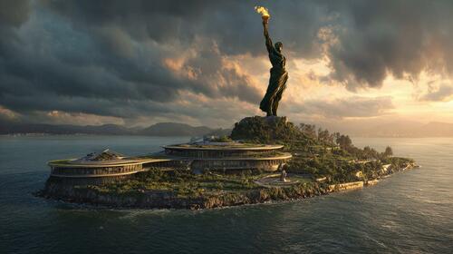 Ross Calvin believes times have changed. He wants to install a 350-foot statue of Prometheus, the Greek titan, on top of Alcatraz Island in the San Francisco Bay. Like the scandalized critics of Horatio Greenough, Calvin’s detractors are numerous. They call his Great Colossus of Prometheus a mix of phallicism and fascism. They claim his vision is too grandiose, too audacious, too difficult to achieve. They have counter-proposed a statue dedicated to Lady Justice as a substitute for Calvin’s monument to chauvinism. But the Denver-based crypto entrepreneur believes President Trump’s America is ready for a powerful, public expression of beauty—one that will serve as a bright, blazing beacon to our latent creative spirit, and stimulate a new generation to dare greatly.