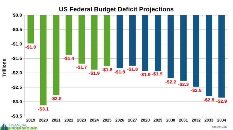 Even with this rosy and unrealistic forecast, the US government is projected to run a cumulative deficit of over $22 trillion over the next ten years—deficits that will have to be financed by issuing more debt, a significant share of which will likely be bought by the Federal Reserve with “money” it creates out of thin air.