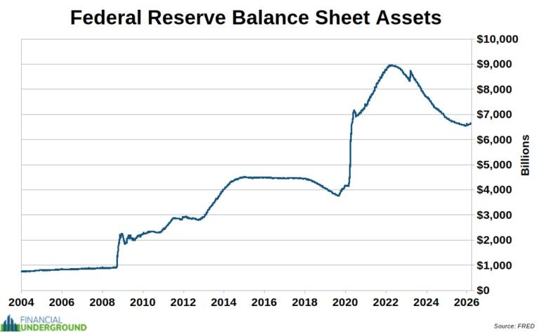 Remember when former Fed Chair Ben Bernanke promised the balance sheet would eventually normalize after the 2008 financial crisis? That promise was made nearly 15 years ago, when the Fed’s balance sheet was around $2.5 trillion and was supposed to shrink back toward pre-crisis levels below $1 trillion. Instead, today the balance sheet is more than double what it was when Bernanke made that pledge — and now the Fed is entering yet another expansion cycle that threatens to push it even higher.