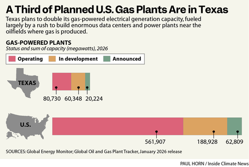 It’s among a handful of similarly colossal ventures announced during 2025 that have made Texas the global epicenter of a gas power buildout, according to data released Thursday by Global Energy Monitor (GEM).