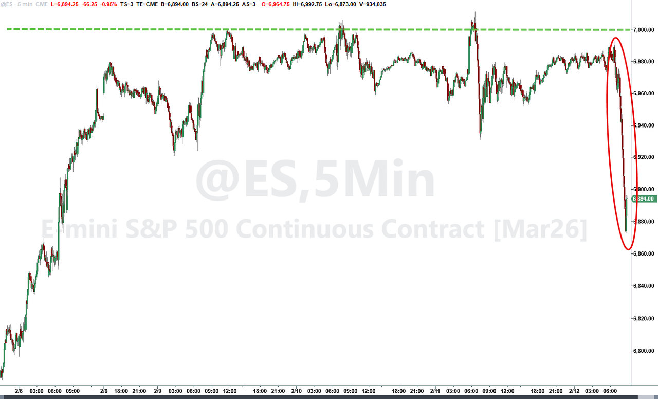 Indeed, according to traders, the ongoing “AI scare trade” is weighing on sentiment and has pushed the S&P sharply lower…