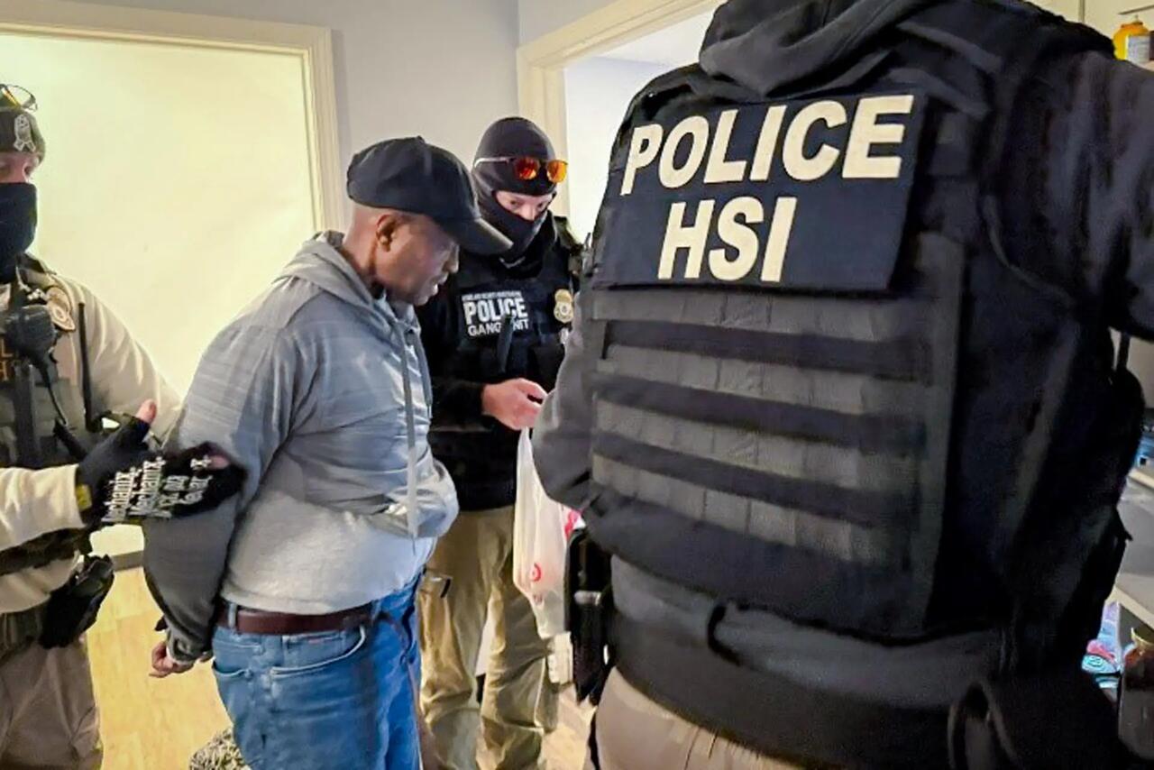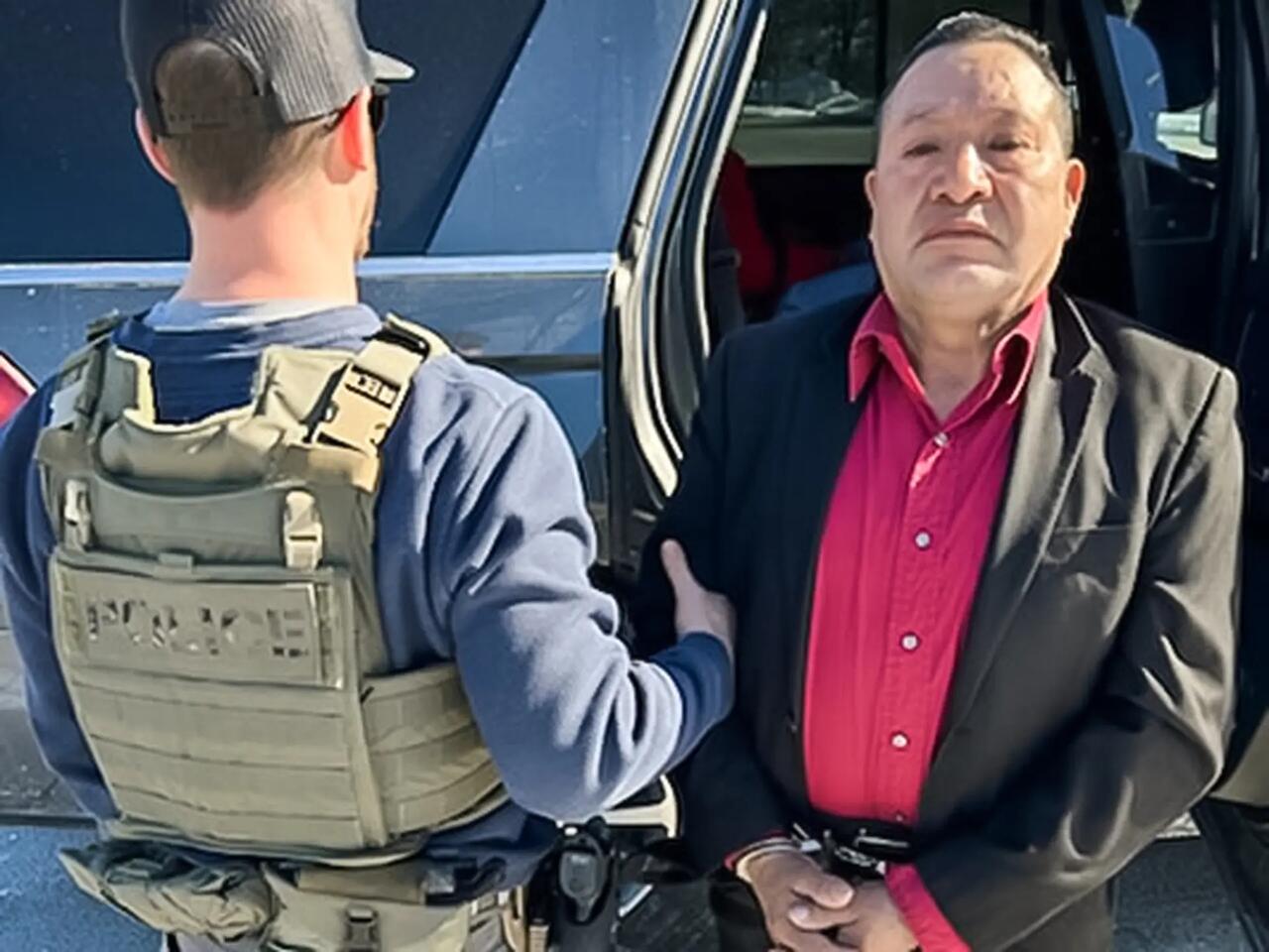 ICE officers arrest Guatemalan national Sostenes Perez-Lopez during an enforcement operation in Brighton, Mass., on Feb. 18, 2025. Perez-Lopez was charged with two counts of indecent assault and battery on a child under 14, according to ICE. Department of Homeland Security