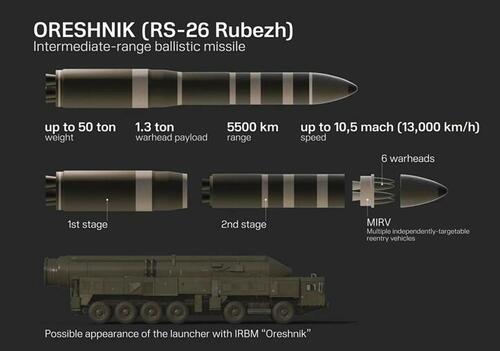 In the remarks he specifically invoked Russia’s hypersonic ‘Oreshnik’ missile, which has been launched on Ukraine at least two known times – one just a week ago – and is capable of reaching speeds exceeding Mach 10.