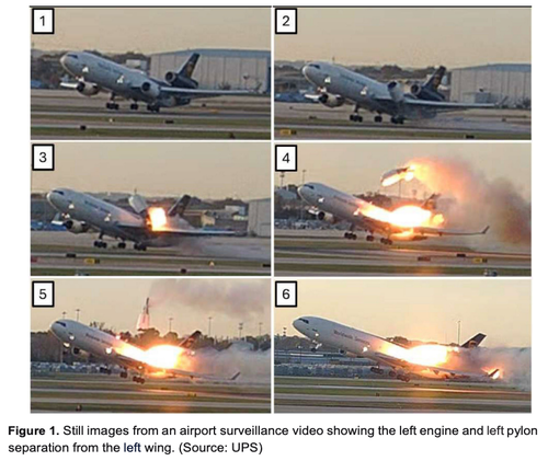 Investigators with the National Transportation Safety Board have released frame-by-frame images showing the left engine of the UPS McDonnell Douglas MD-11F freighter separating from the aircraft during a straight-out departure earlier this month in Louisville, leading to a horrific crash.