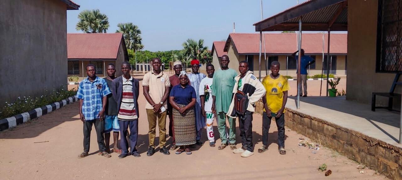 People pose for a photograph at St. Mary’s Catholic Primary and Secondary School after armed men abducted children and staff in Papiri, Nigeria, on Nov. 21, 2025. Christian Association of Nigeria via AP