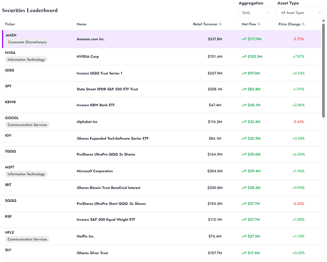 Last Friday, AMZN recorded its largest single-day of net retail buying since Aug 2024.