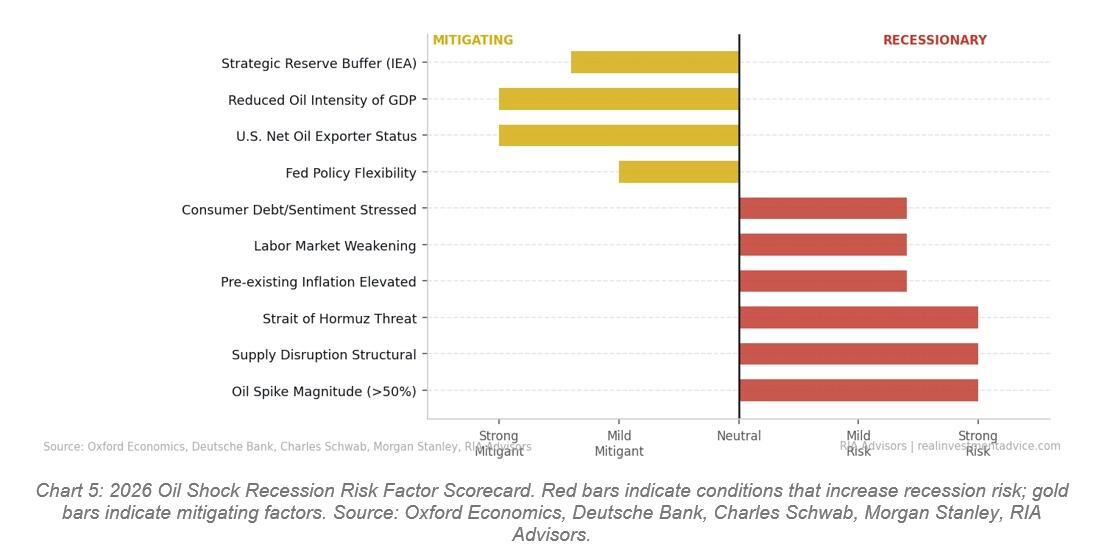 The critical investor lesson is that the oil shock itself rarely determines the market outcome. The recession does. And the recession typically follows when the shock is persistent, when it combines with pre-existing economic weakness, and when monetary policy cannot respond flexibly. That is precisely the risk matrix investors need to monitor right now.