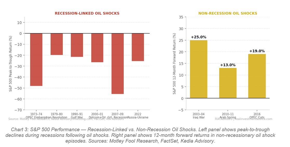 History draws a sharp line between market outcomes in oil shocks that became recessions and those that did not. That line does not disappear just because it’s uncomfortable.