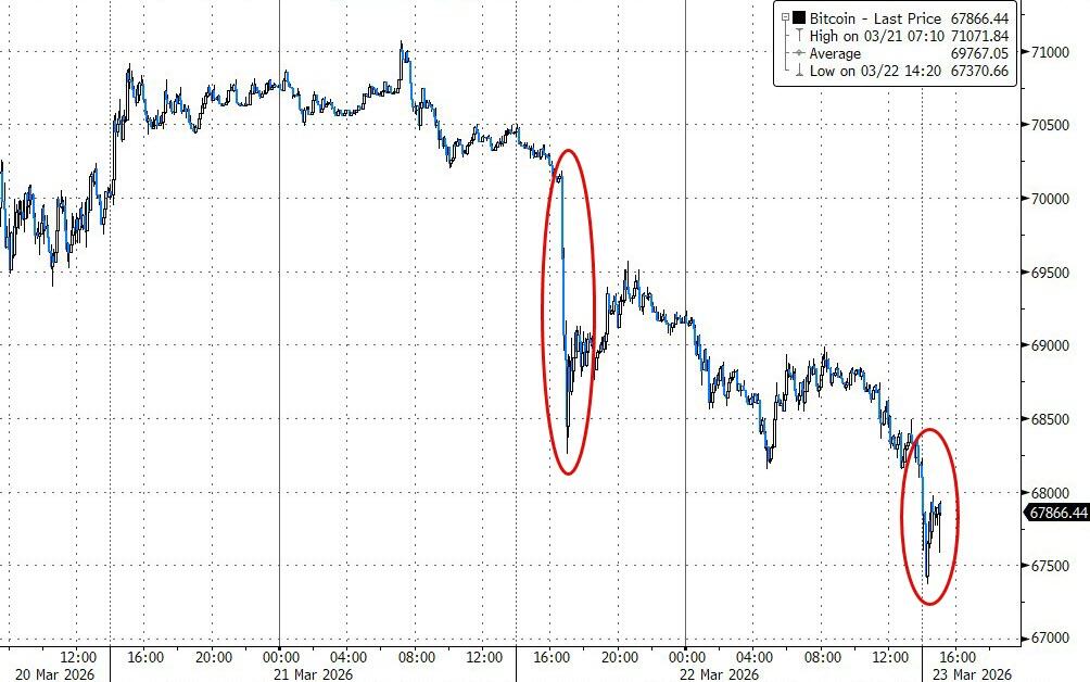 Following a weekend where geopolitical headlines swung from “winding down” (Friday after the close) to threats, deadlines, and “obliteration” tit-for-tat talk suggesting no end in sight, it is perhaps no surprise that oil prices are up (and so equity futures are down) as we open Sunday night.