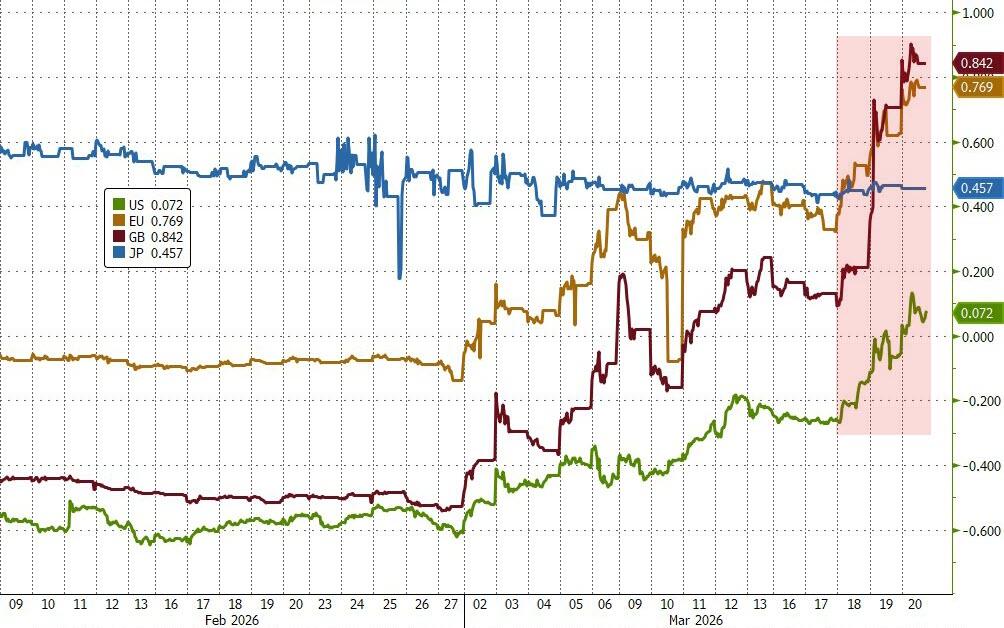 The rates market is already hinting at that tension. The front-end repricing story overshadows any clean duration selloff as policy-error fears begin to show. Hawkish rhetoric can lift two-year yields fast. It’s much harder to persuade the long end that economies can absorb a full tightening cycle on top of a prolonged energy shock.