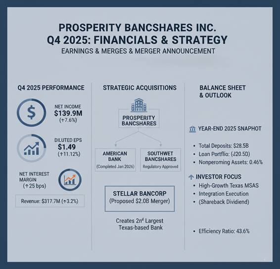 This announcement follows a period of high M&A activity for the bank. Prosperity confirmed the completion of its merger with American Bank Holding Corporation effective January 1, 2026, and noted it has received all necessary regulatory approvals for its pending acquisition of Southwest Bancshares, Inc.
