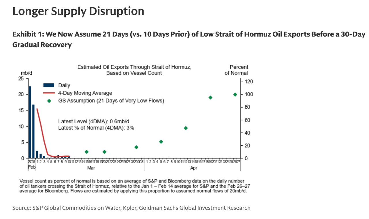 Goldman expects longer disruptions on the Hormuz chokepoint: