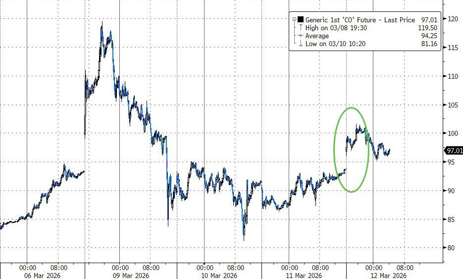 The overnight chaos sent Brent crude back over $101/bbl, but it has since fallen to $96/bbl by 0630 ET. This comes after the IEA’s 32 member countries agreed on a “record” 400 million barrel release to cap energy prices. U.S. Energy Secretary Chris Wright announced that the U.S. will contribute 172 million barrels. As we explained to readers on Wednesday, this SPR dump is likely to have only a minimal impact.