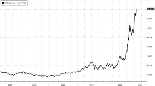 More broadly, KOSPI made a “clear breakout above 5,000 and closed @ 5,085 today, marking YTD growth of +21%,” Goldman analyst Heather Oh told clients earlier.