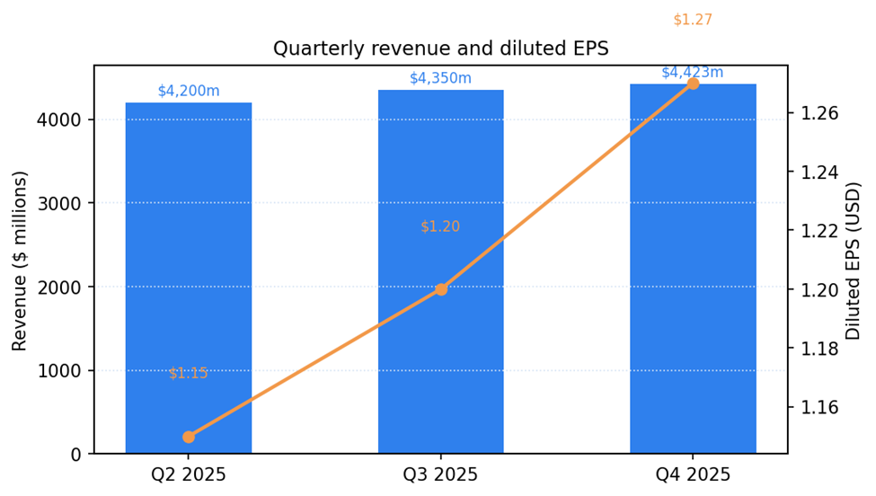 – Net income: $1,163 million in Q4 2025, down 3% year over year.