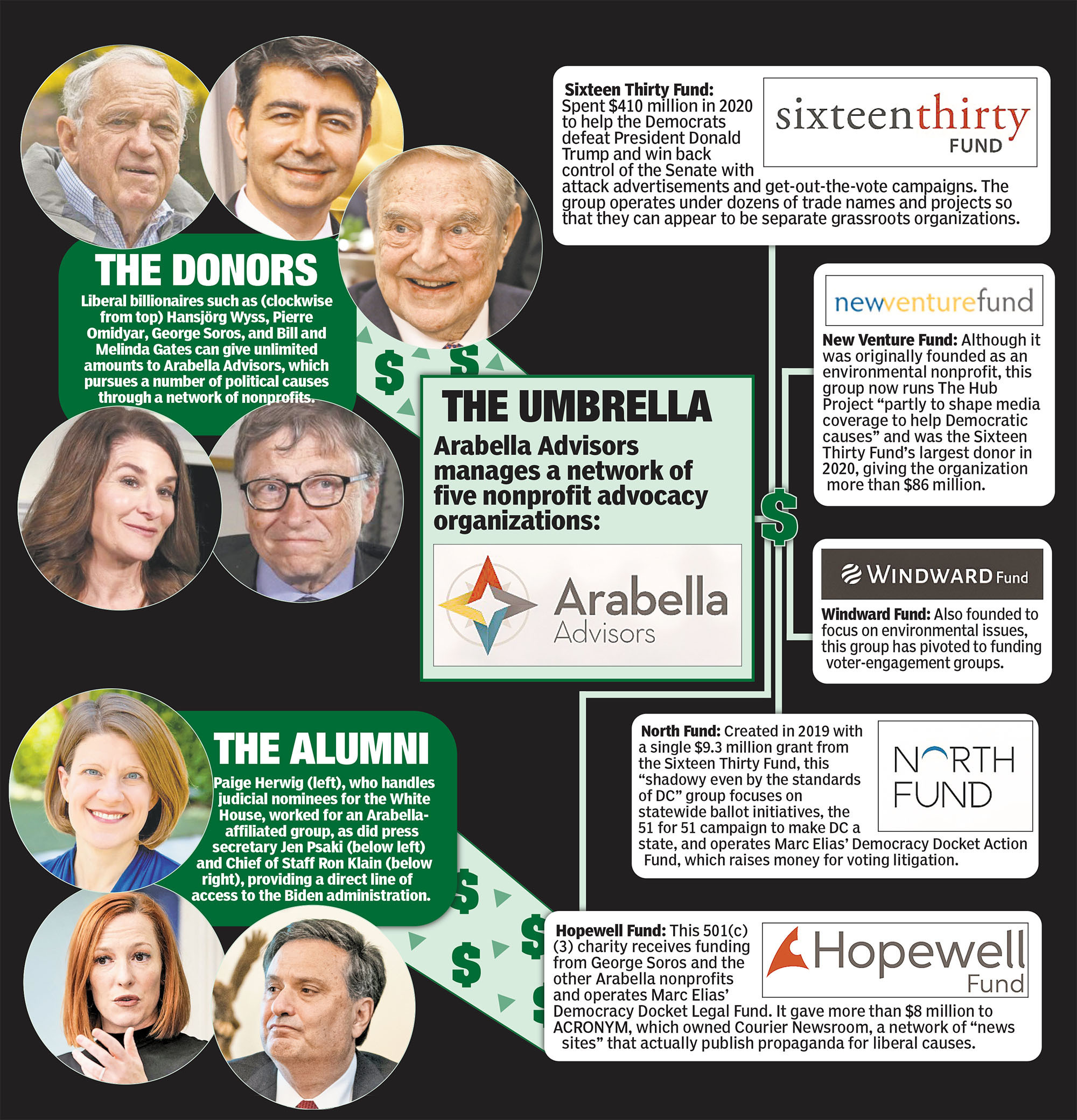 Arabella Advisors, the world’s most influential fund for left-wing politics, has rebranded but not dissipated. Arabella Advisors infamously created the Sixteen Thirty Fund, a dark money nonprofit that funneled hundreds of millions to persuade voters to support “progressive” causes, with the backing of George Soros, Bill Gates, Pierre Omidyar, and Swiss billionaire Hansjörg Wyss.