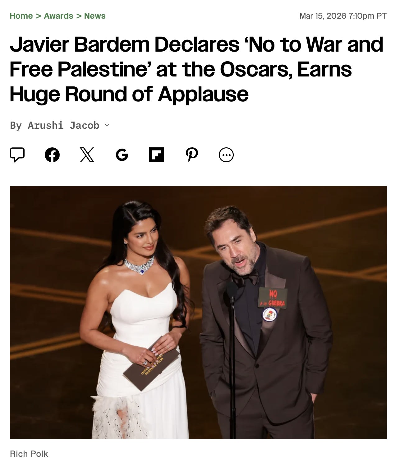 What’s rushed in to fill the vacuum is something else: a stage increasingly used for political signaling. Acceptance speeches drift into activist manifestos. Presenters pause the show to deliver moral instruction. Carefully rehearsed moments of “importance” are inserted between categories as if the ceremony itself must justify its existence by proving it stands for something larger than movies. No to war! He’s so brave!