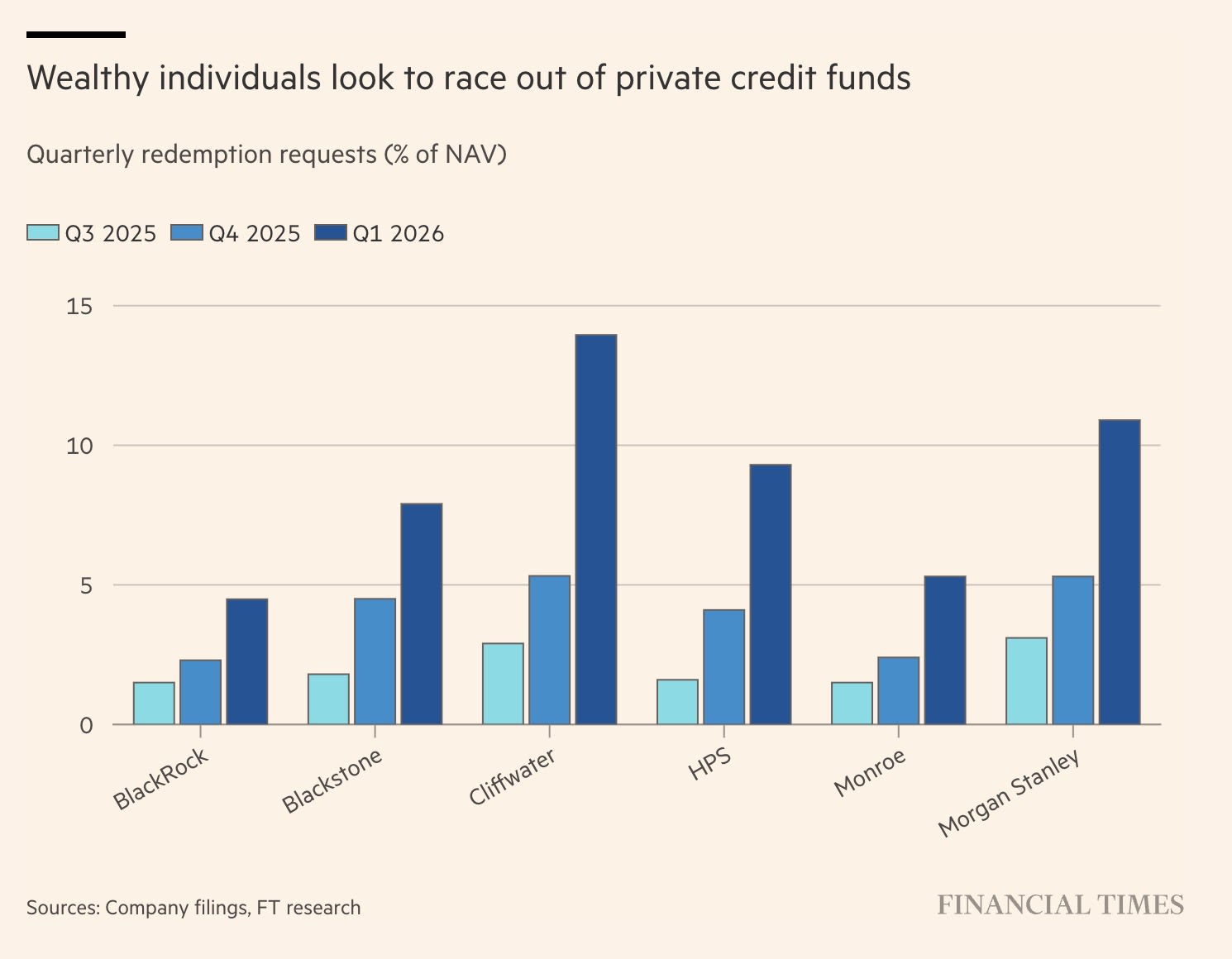 The broader private credit market is beginning to show similar signs of stress. In recent weeks a number of funds tied to large asset managers have already been forced to limit investor withdrawals after redemption requests exceeded the quarterly caps built into their structures. Funds connected to Morgan Stanley, BlackRock, and Cliffwater have all faced similar pressures.