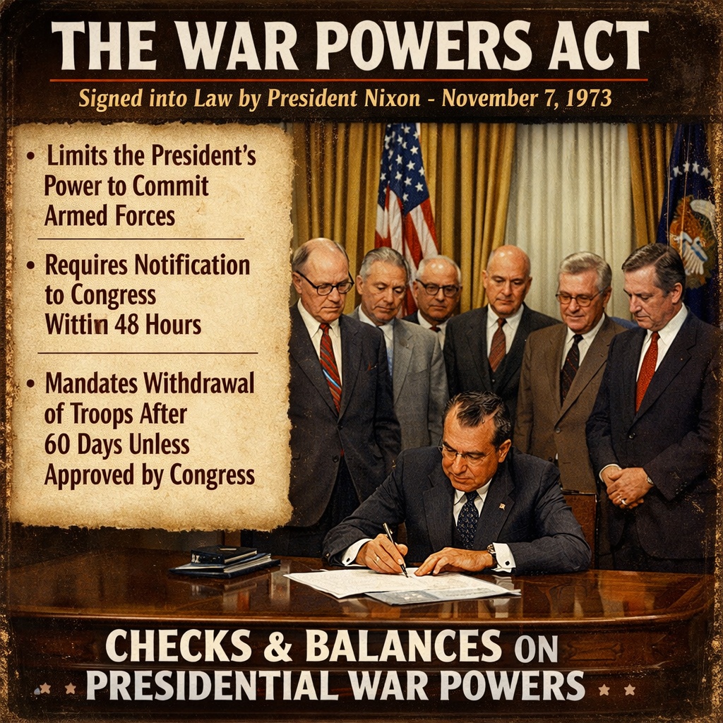 The Act explicitly forbids the President from keeping troops in combat for more than 60 days without Congress’s explicit approval, a direct attempt to prevent future lengthy, undeclared conflicts like Vietnam.