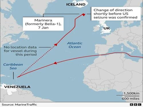 The Russian-flagged Marinera tanker was just seized by the US in the Atlantic. It was earlier named the Bella 1 and is under US sanctions due to connections to Hezbollah. It sailed under the Guyanese flag from Iran to Venezuela and attempted to break the US’ blockade. It failed, turned around, changed its name to the Marinera, and received a temporary permit to sail under the Russian flag before being seized. Russian then demanded that its citizens on board be treated humanely and returned home.