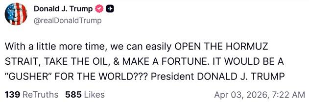 Trump Says ‘A Little More Time’ Needed To Open Hormuz, ‘Take The Oil & Make A Fortune’ – As Israel Hit Hard During Passover