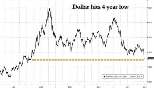 The de-Dollarisation meme rolled on yesterday as the Bloomberg Dollar spot index sank to its lowest reading since February of 2022. The fall became precipitous after Donald Trump was given an opportunity by journalists to talk up the Dollar, but instead replied “no, I think it’s great” when asked whether he was concerned about its recent drop. It would seem that there is no rage against the dying of the strong Dollar from the President.