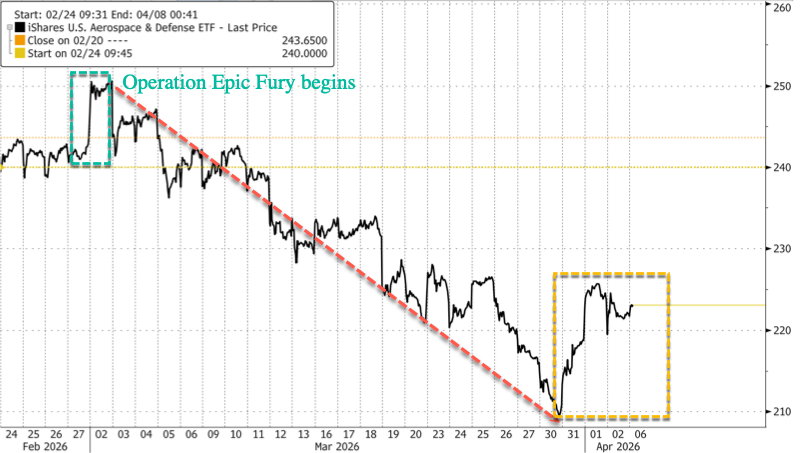 U.S. defense stocks showed signs of stabilizing in April after tumbling since Operation Epic Fury began in late February and sustaining a Mach bloodbath. The improvement followed Friday’s White House proposal to lift military spending sharply, to roughly $1.5 trillion in 2027.