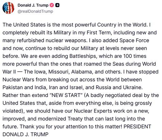 This has been a longtime complaint of Trump’s, which goes all the way back to his first administration, when similar complaints about the existent framework for arms control were issued.