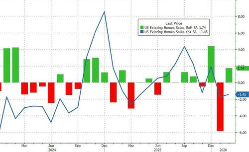 Despite tumbling mortgage rates, existing home sales plunged (the most since COVID) in January, with some blaming ‘below-normal temperatures’ despite The West suffering the biggest declines (and unaffected by the winter storms).
