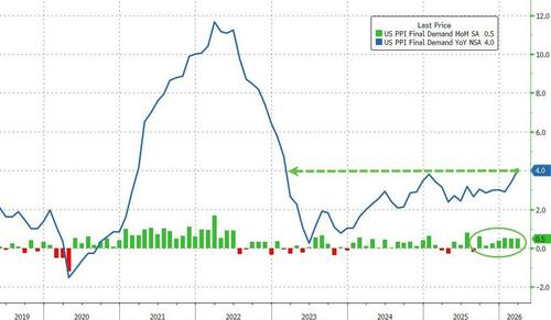 Against expectations of a 1.1% MoM rise, March’s Headline PPI shocked everyone by rising only 0.5% MoM (equal to the revised lower 0.5% MoM rise in both of the last two months). This pushed PPI up 4.0% YoY (the highest since Feb 2023) but well below the +4.6% YoY exp…
