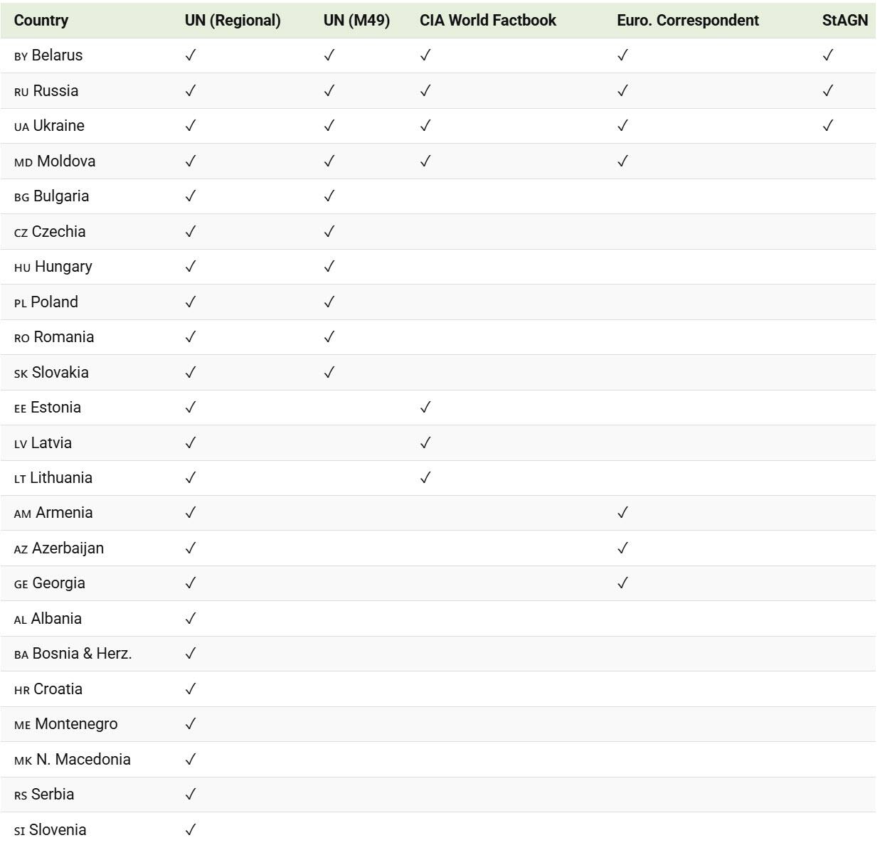 The maps below use data from various organizations to highlight interpretations of Eastern Europe’s geographical extent.