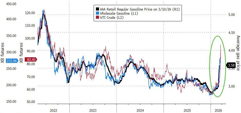 Of course, what really matters (for Trump and the Republicans) is the price of gas, which at this rate is set to soar above $4/gallon imminently…