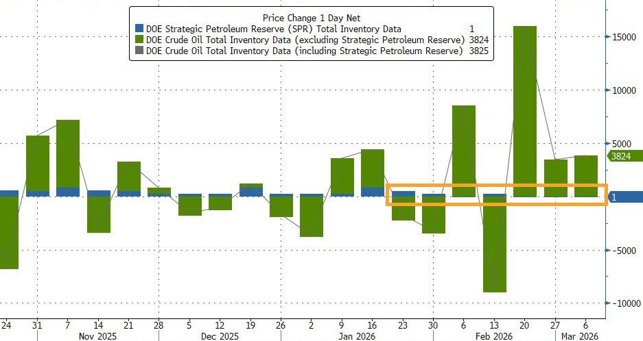 For the third week in a row, the Strategic Petroleum Reserve (which is now once again making headlines) saw no change…