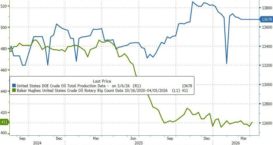 US Crude production dipped modestly last week as the rig count stabilized…